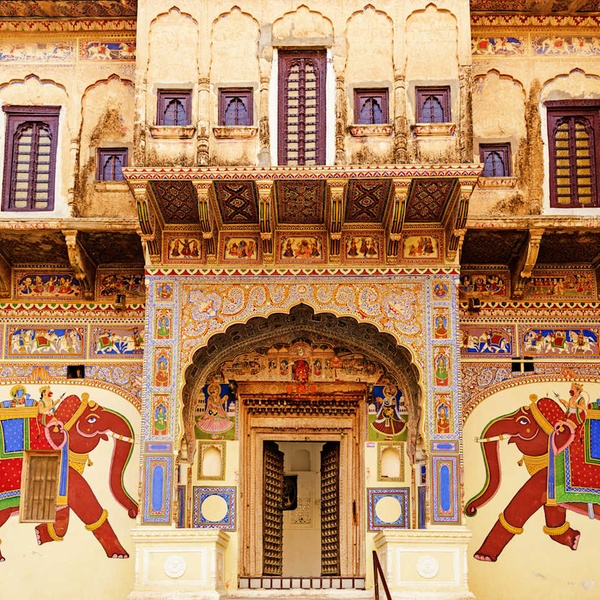 Il lontano Stato feudale di Mandawa, nato nel 1755 nel deserto come una sosta fortificata sulla rotta delle carovane che collegava il Vicino e l'Estremo Oriente, è stato poi trasformato grazie ai proventi del commercio in una città fiabesca di palazzi magnificamente dipinti e ornati.