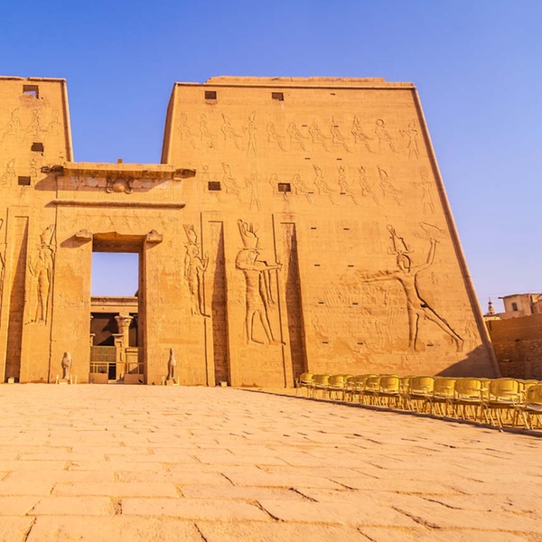 Partenza per la visita del magnifico tempio di Horus a Edfu, questo capolavoro di equilibrio ed eleganza architettonica è uno dei siti meglio conservati di tutta l'antica Egitto, un bell'esempio di arte tolemaica del periodo greco-romano. Si entra nel tempio attraverso il grande pilone decorato con enormi rilievi che mostrano il re e gli dei, verso il cortile le cui pareti raccontano i diversi riti compiuti dal re. Due grandi falchi di granito nero, rappresentazione del Dio Horus, custodiscono l'ingresso del tempio.
