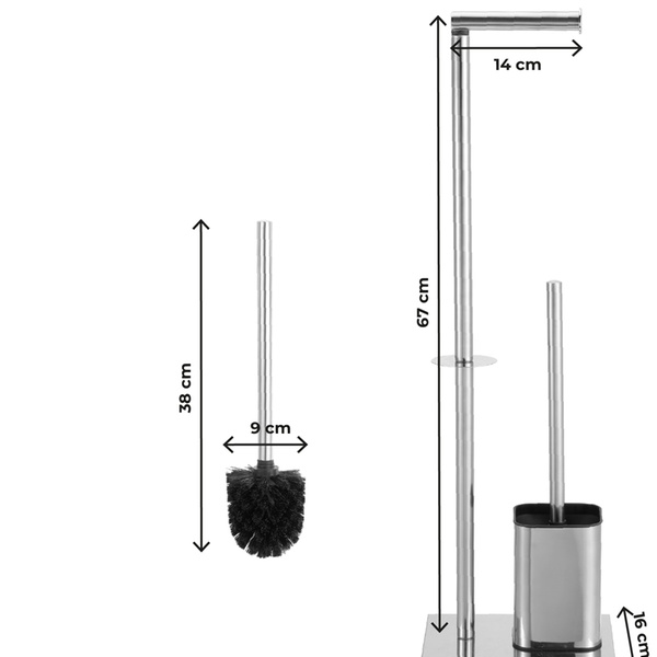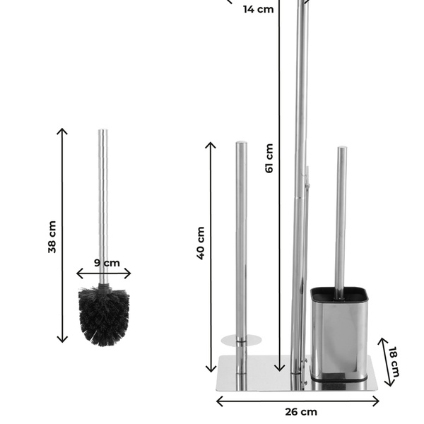 - Materiale igienico e semplice da pulire con un panno umido. Lo scopino è dotato di contenitore dedicato che aiuta a mantenere ordine e igiene nel bagno.