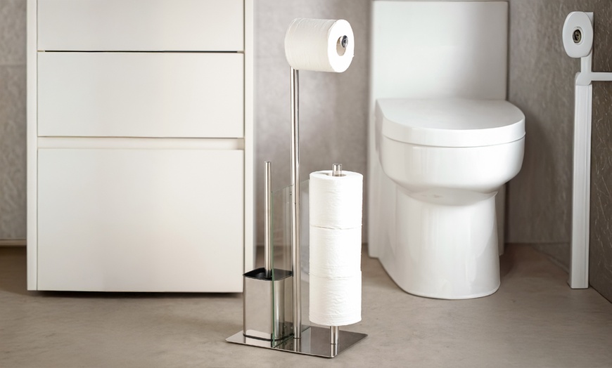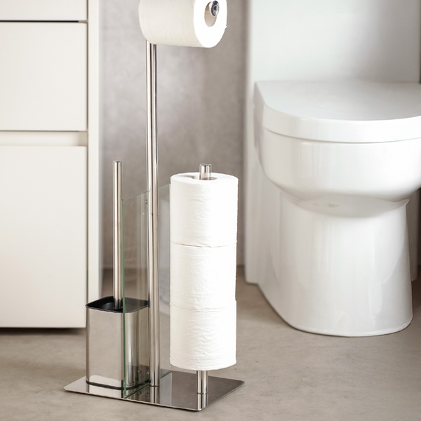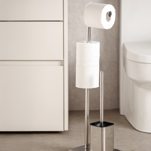 Eleganza e funzionalità si incontrano: il design moderno della piantana portarotolo si integra perfettamente in ogni bagno.