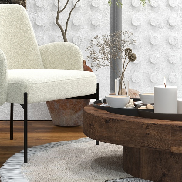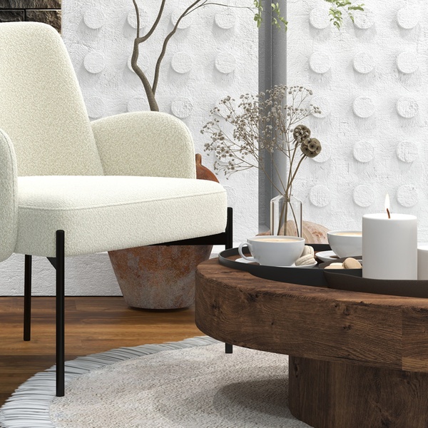 Con un rivestimento in tessuto bouclé elegante, questo fauteuil offre una seduta avvolgente e un comfort che dura nel tempo.