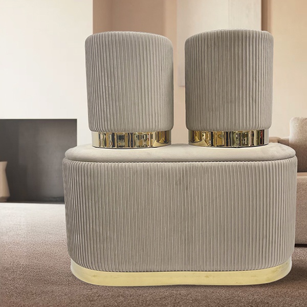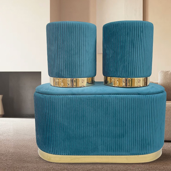 Eleganza e funzionalità si combinano: un pouf grande con contenitore e due piccoli per ogni esigenza di stile e spazio!