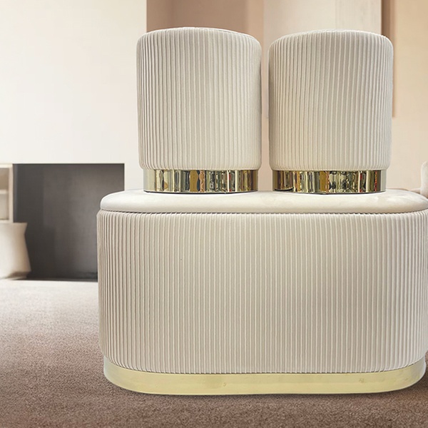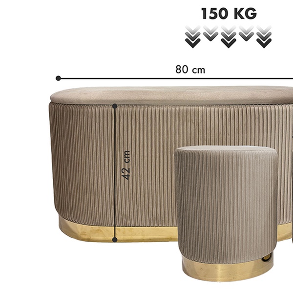 • Set da 3 pouf eleganti: include 1 pouf grande con contenitore (42x80 cm) e 2 pouf piccoli (29x35 cm)