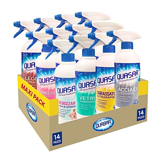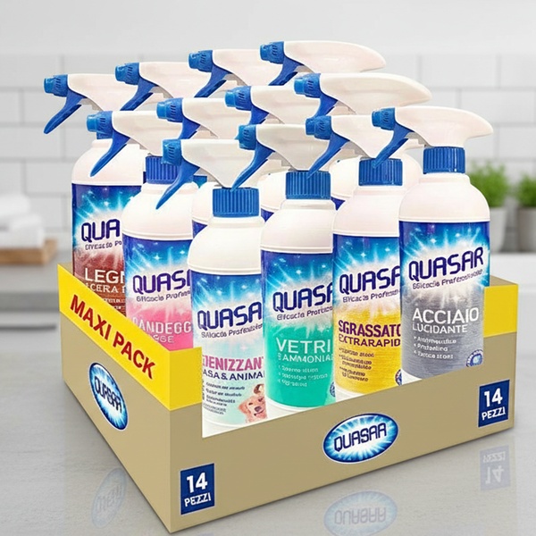 Trasforma la tua casa in un'oasi di pulizia impeccabile con la Quasar Special Box. 14 prodotti professionali, disponibili in un unico kit esclusivo per una pulizia profonda e completa.