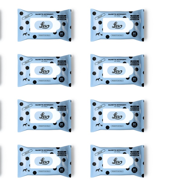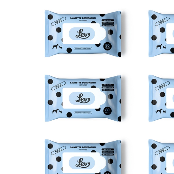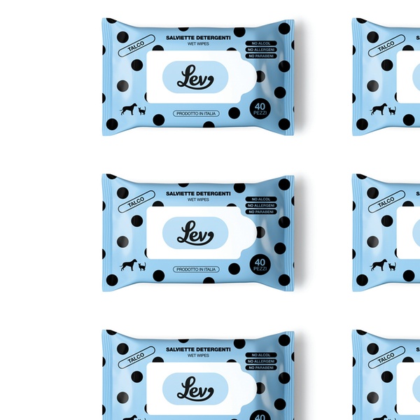 - Le Salviette Detergenti Lev al Talco sono perfette per la pulizia del manto, zampe, muso e orecchie del tuo animale.