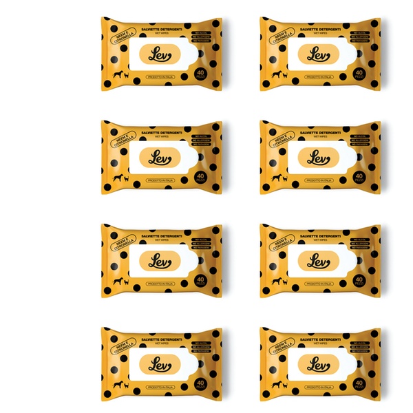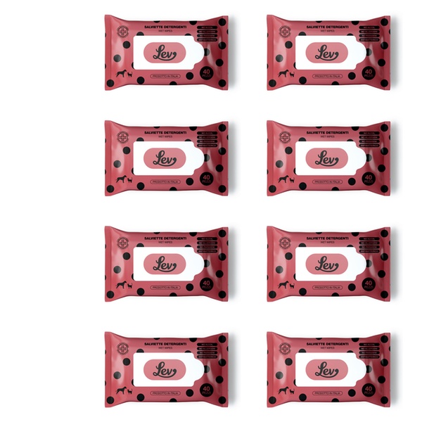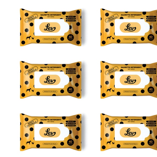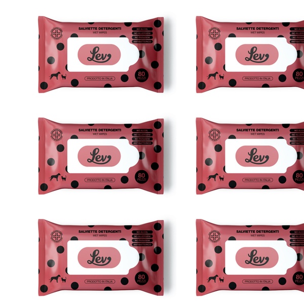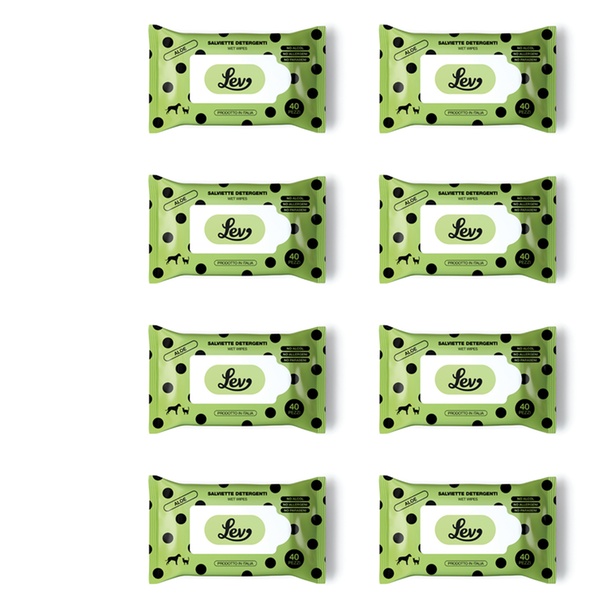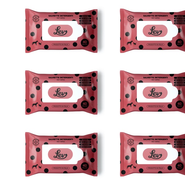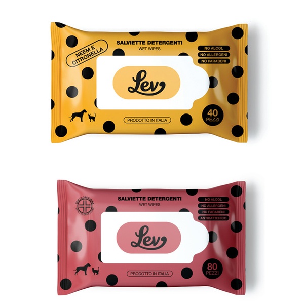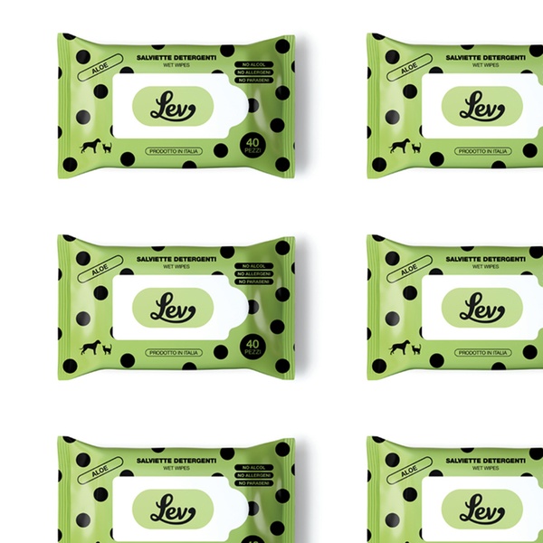 - Le salviette detergenti Lev all’Aloe sono ideali per la pulizia di manto, zampe, muso e orecchie di cani e gatti.