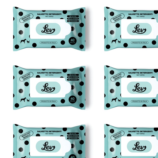 - Le salviette detergenti Lev al Muschio Bianco sono ideali per la pulizia del manto, zampe, muso e orecchie di cani e gatti.