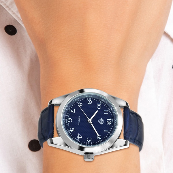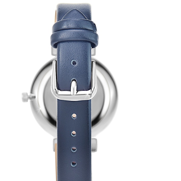 - Cinturino: pelle blu, lunghezza 17–21 cm, larghezza 18 mm