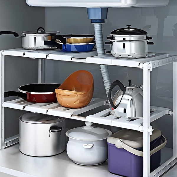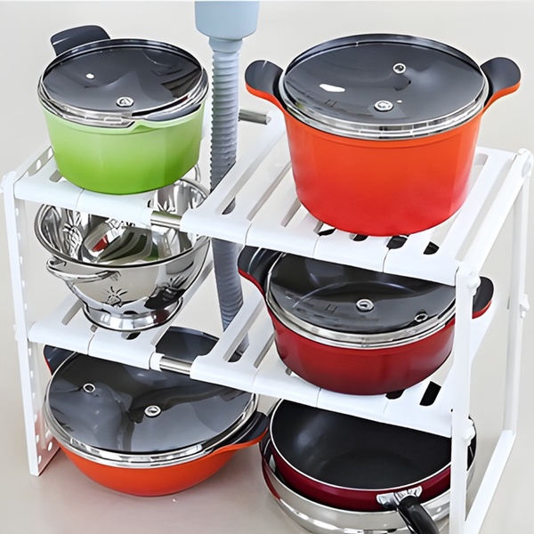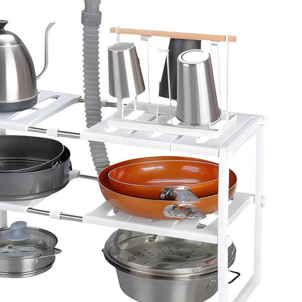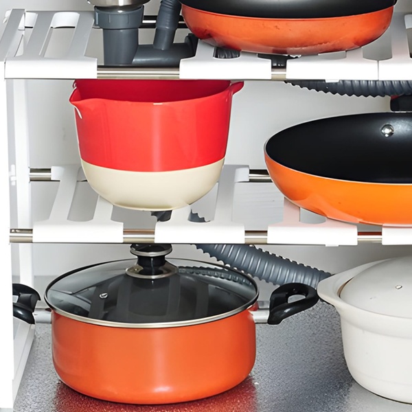 Ottimizza lo spazio sotto il lavello con un organizzatore estensibile e personalizzabile, facile da assemblare e da pulire!