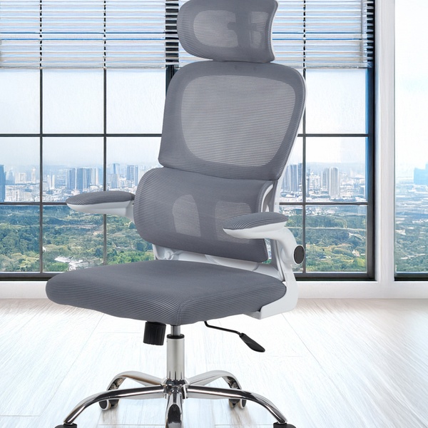 Design ergonomico con schienale in rete traspirante per un comfort ottimale, ideale per lunghe ore di lavoro senza affaticamento.
