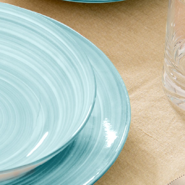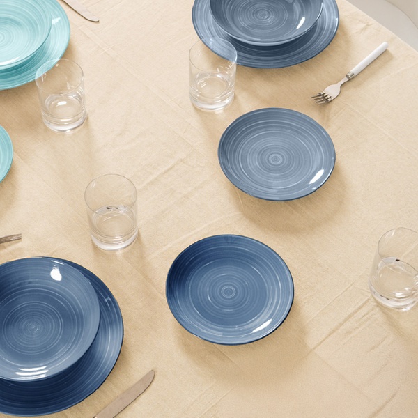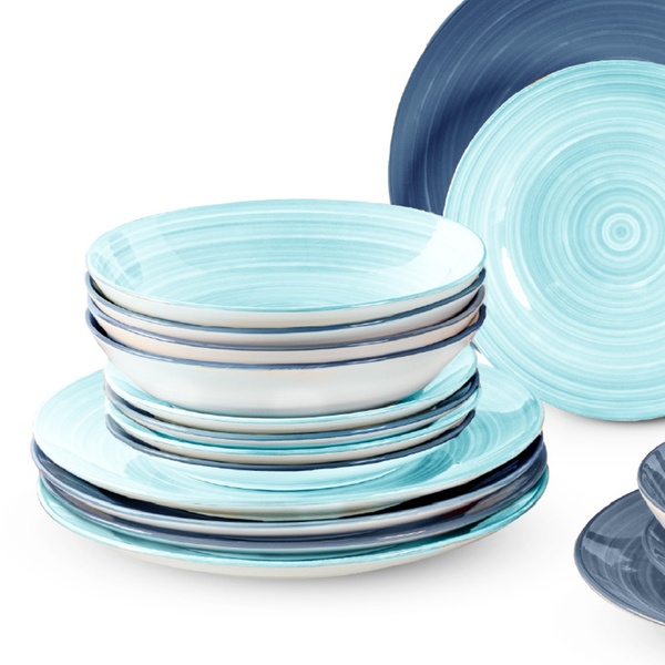 • Linea ''Acqua'' con decoro a spirale in eleganti sfumature blu e azzurro che richiamano i colori del mare. Uno stile fresco e raffinato, ideale per chi ama una tavola moderna, rilassante e minimal.
