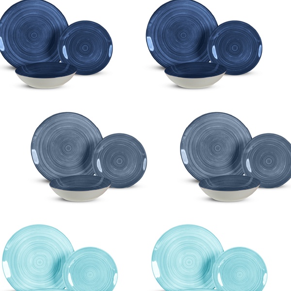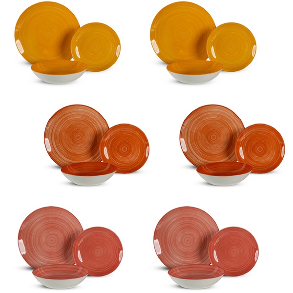 Set di 18 piatti in porcellana colorati, disponibile in 3 colori