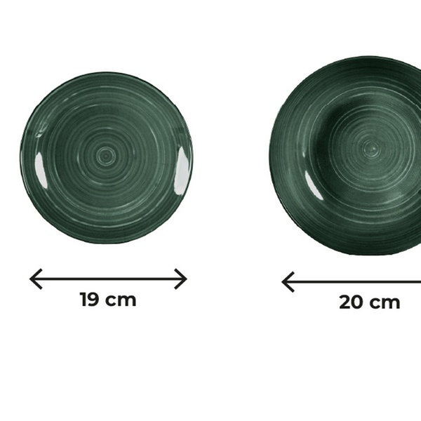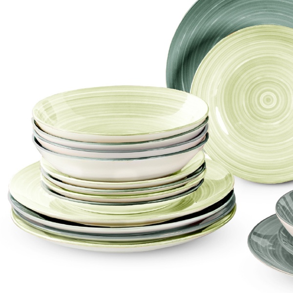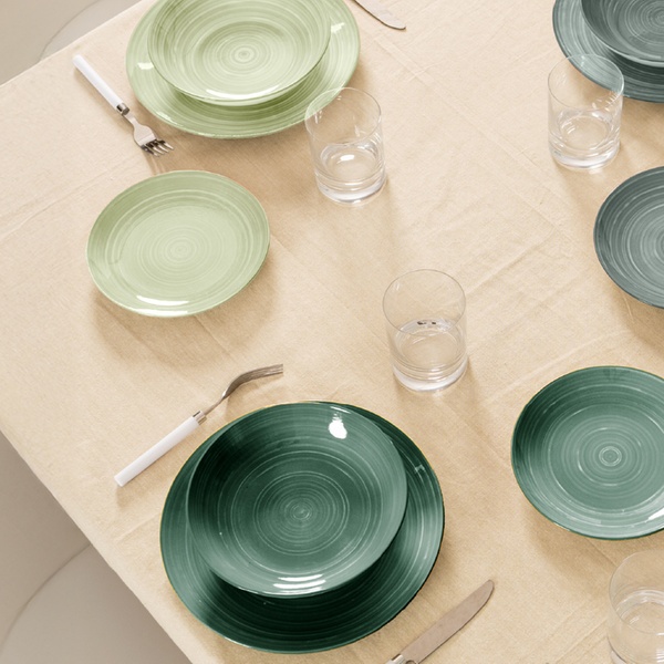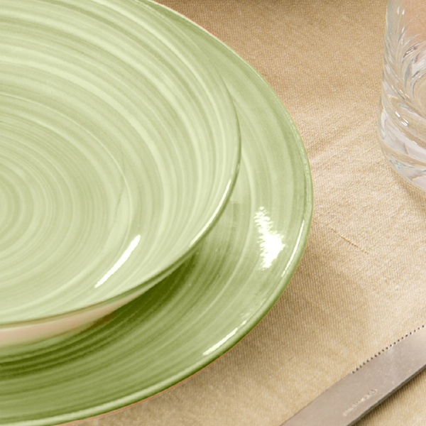 • Linea ''Terra'' con decoro a spirale in delicate tonalità verde salvia e verde bosco, ispirate alla natura. Una combinazione armoniosa ed elegante per una tavola sobria, equilibrata e perfetta per ambienti dal gusto naturale.