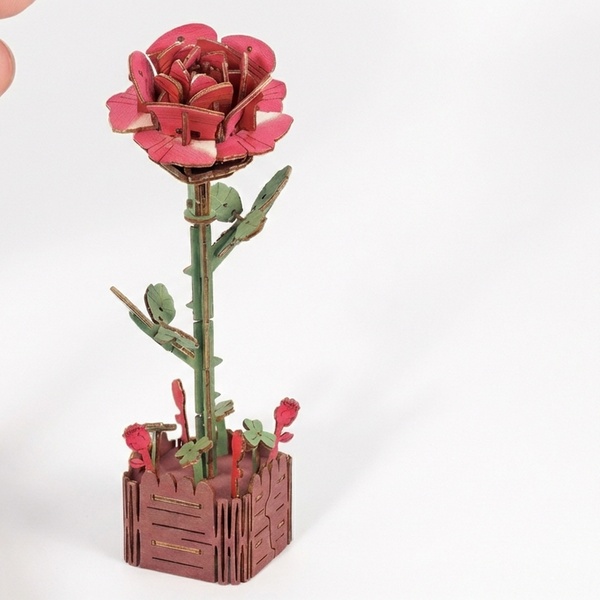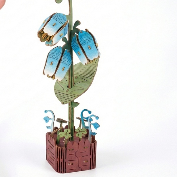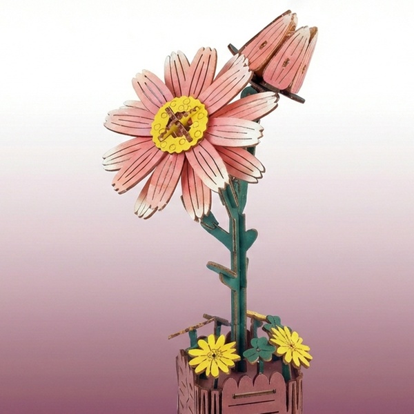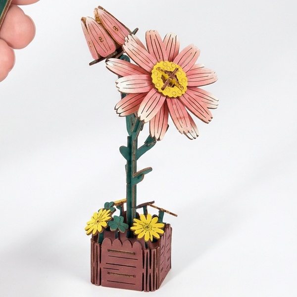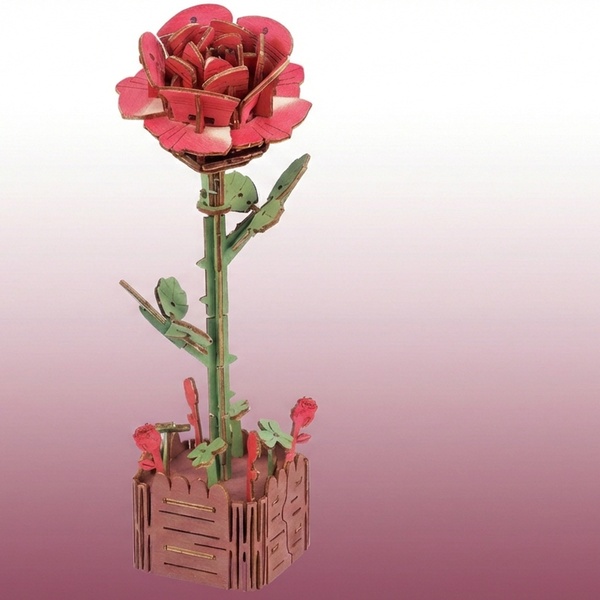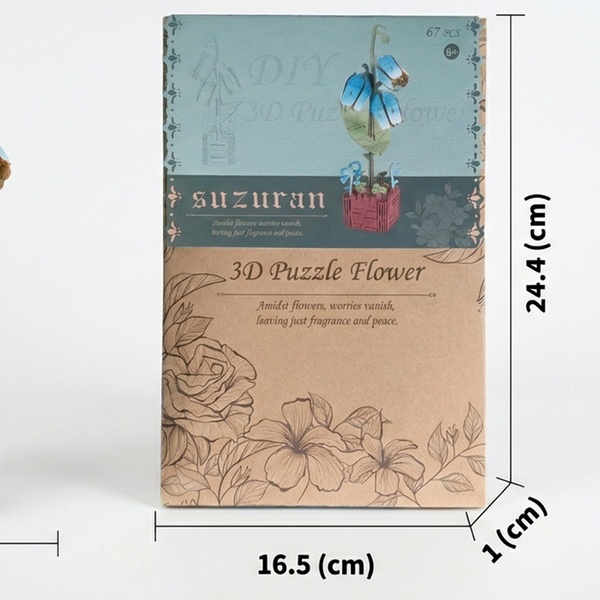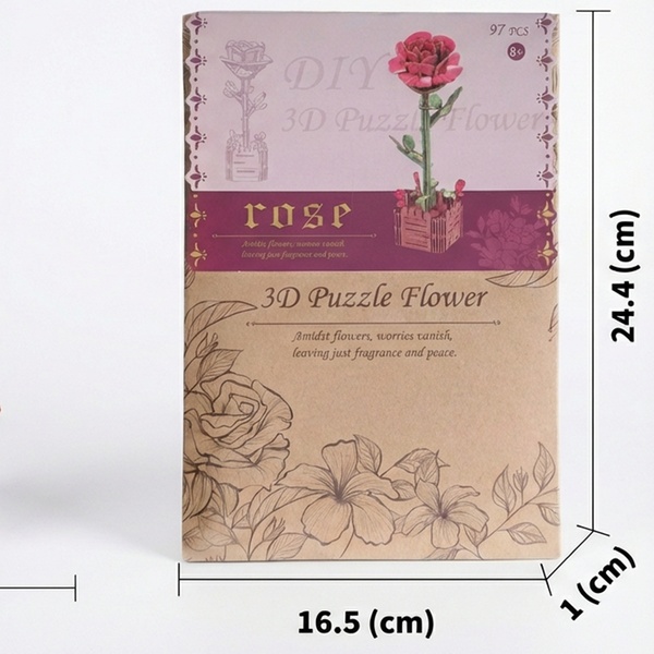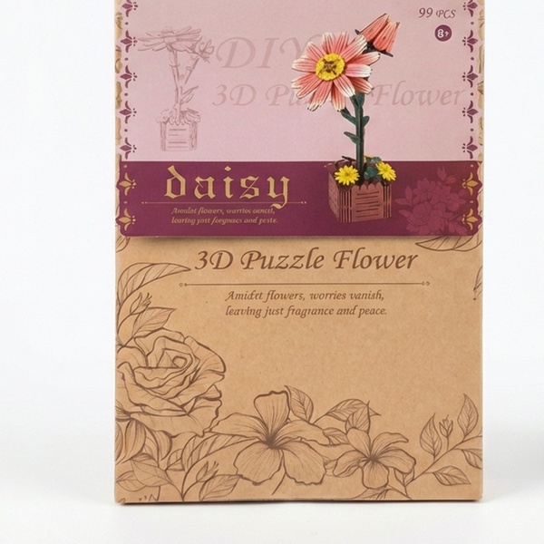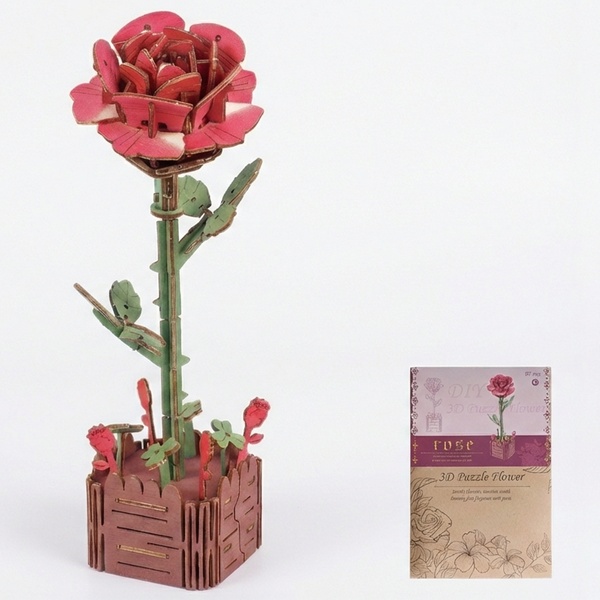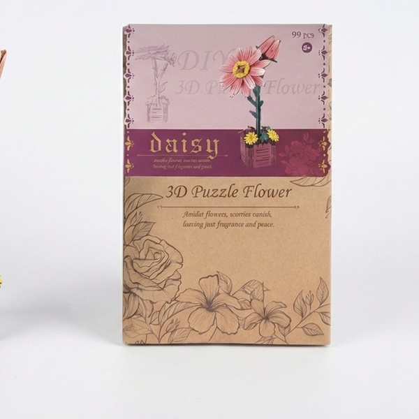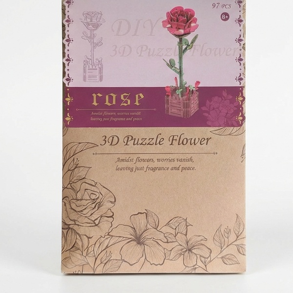 - 1 kit fai da te per realizzare un puzzle 3D a forma di fiore in legno, con istruzioni dettagliate.