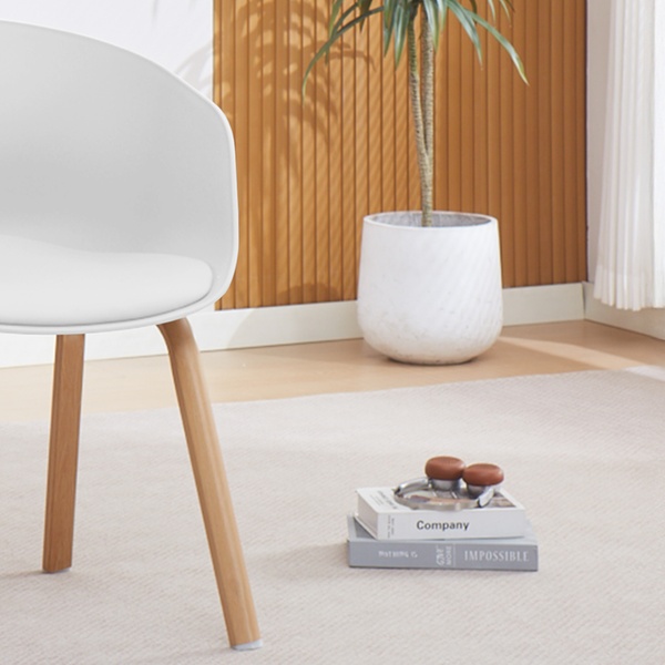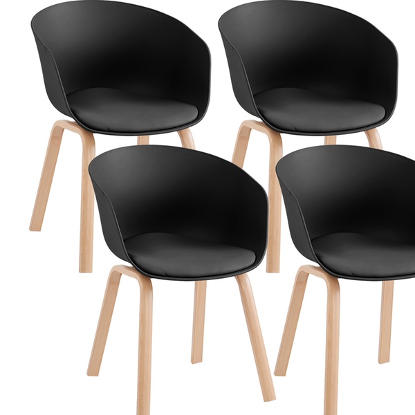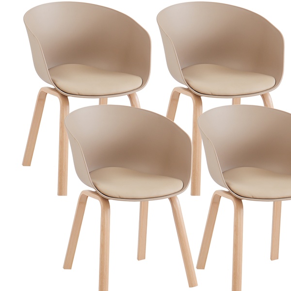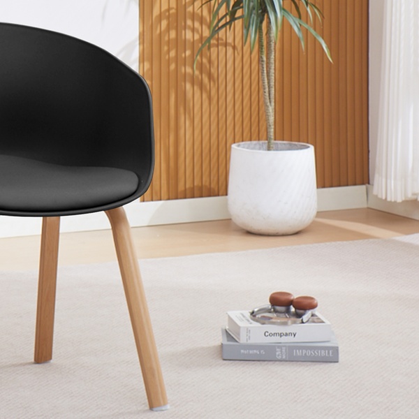 • Materiale e struttura: schienale in polipropilene resistente, gambe in metallo effetto legno, portata massima 150 kg. Robuste e stabili, adatte all’uso quotidiano.
