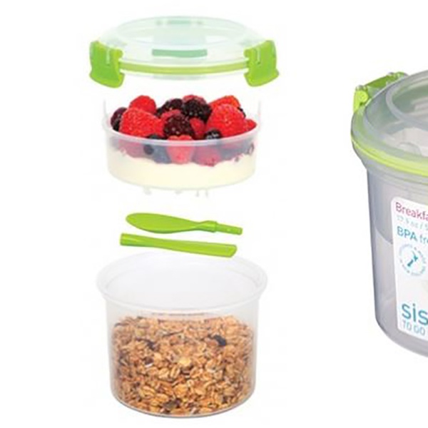- Il contenitore inferiore è ideale per la conservazione di cereali o di frutta e il contenitore superiore è adatto per la conservazione di latte o di yogurt
