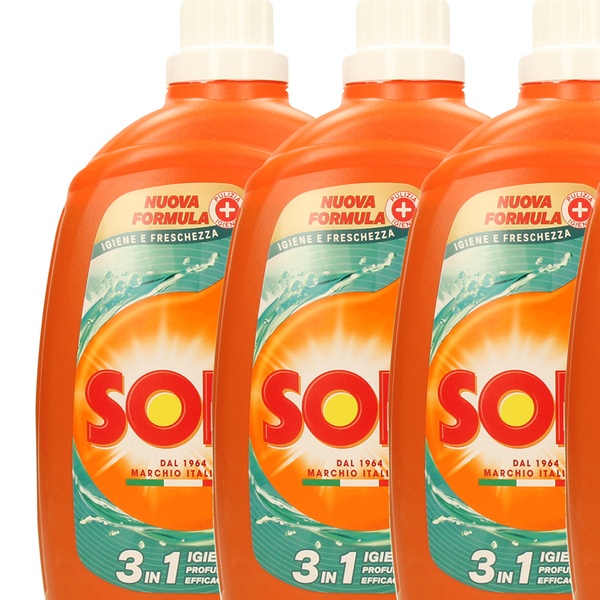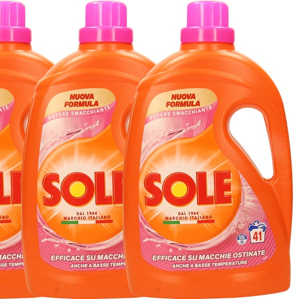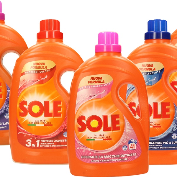 Il detersivo liquido Sole aiuta a rimuovere le macchie fin dal primo lavaggio penetrando in profondità e donando brillantezza al bucato