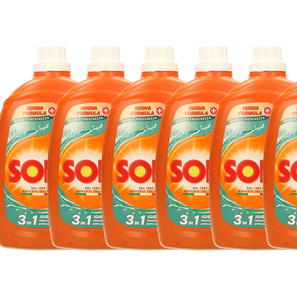 Oggi Groupon offre 4, 6 o 8 confezioni di detersivo liquido per lavatrice Sole, distribuite da Spesasicura