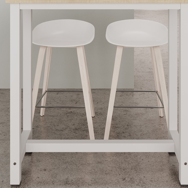 • Struttura: piano in pannello melaminico color sonoma opaco, gambe in metallo laccato bianco lucido.
