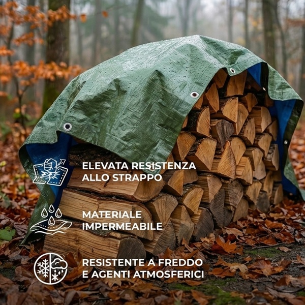• Perfetto per coprire legna da ardere, mobili da giardino, barbecue, biciclette, attrezzature e materiali da lavoro.