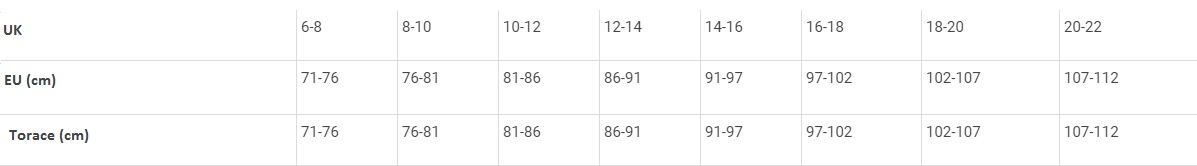 Corrispondenza con le taglie EU e size chart qui