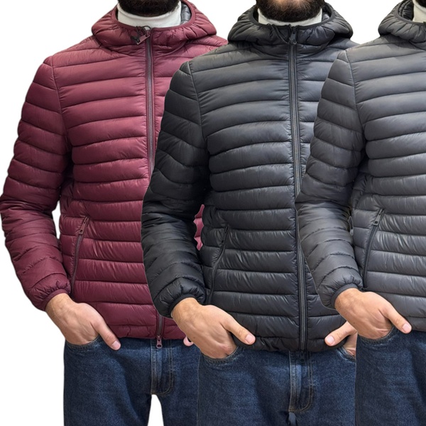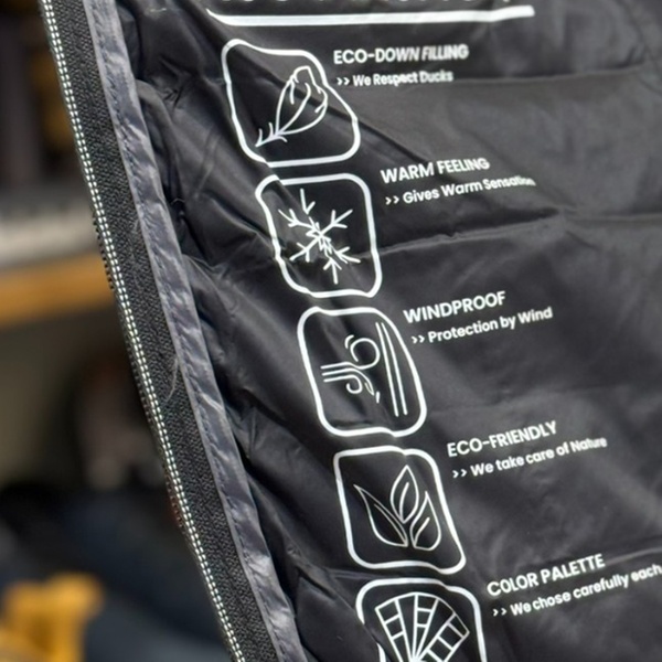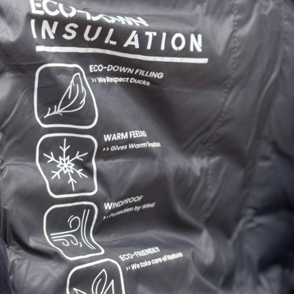 - Imbottita con leggera piuma, realizzata in tessuto lucido superleggero