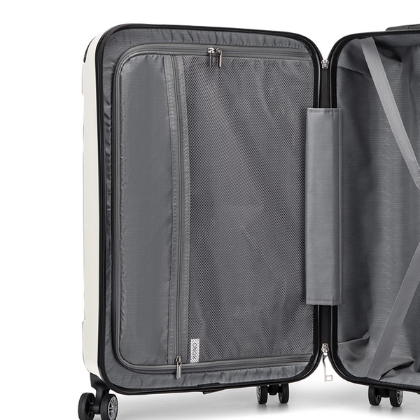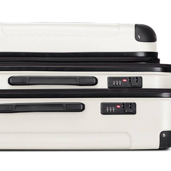 Caratterizzato da un materiale ABS leggero ma resistente, questa valigia è dotata di un manico in lega di alluminio di alta qualità e quattro ruote a 360 gradi per un viaggio facile