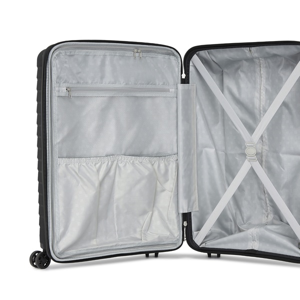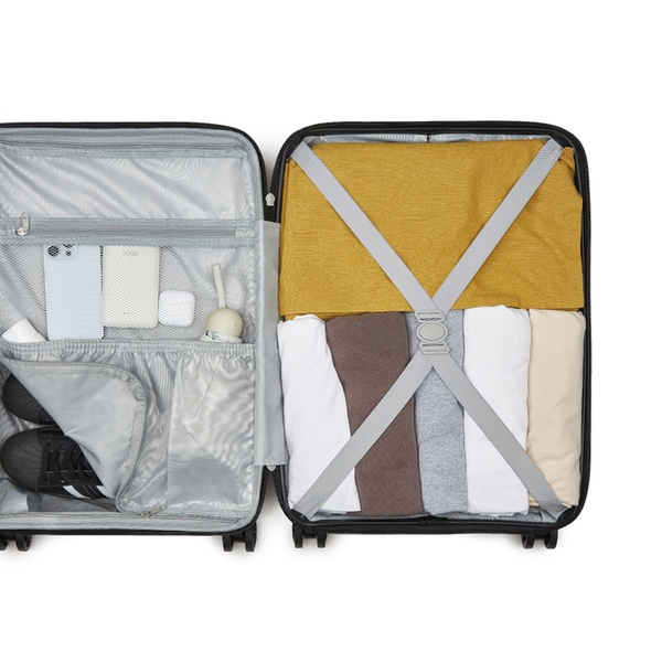 - Lato con cinghie elastiche incrociate per fissare i vestiti e mantenerli ordinati, riducendo le pieghe anche a pieno carico