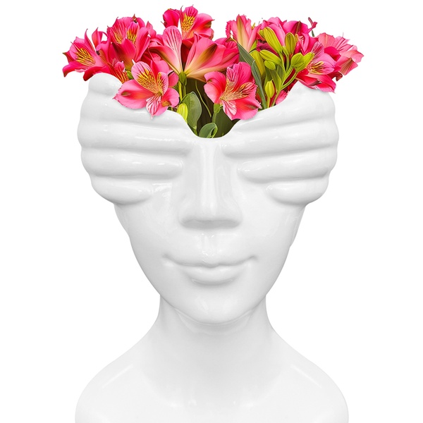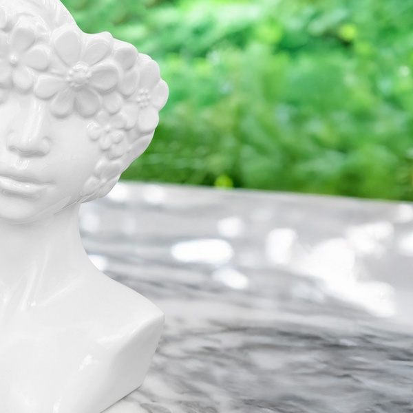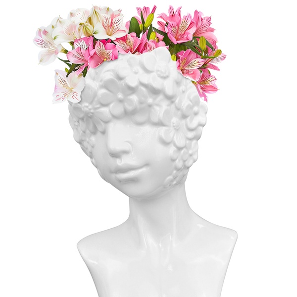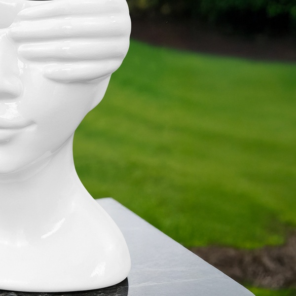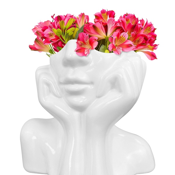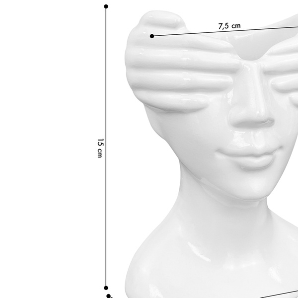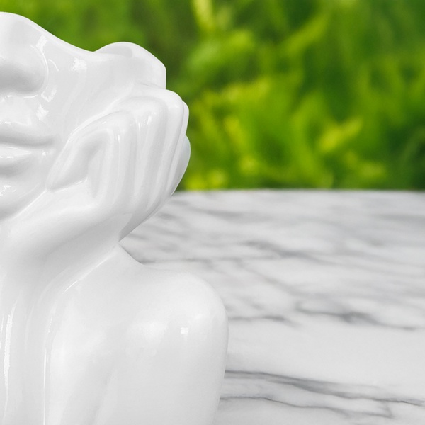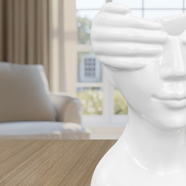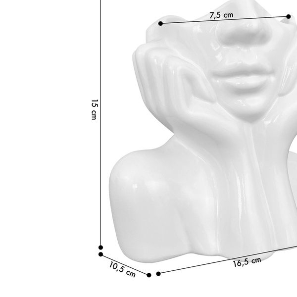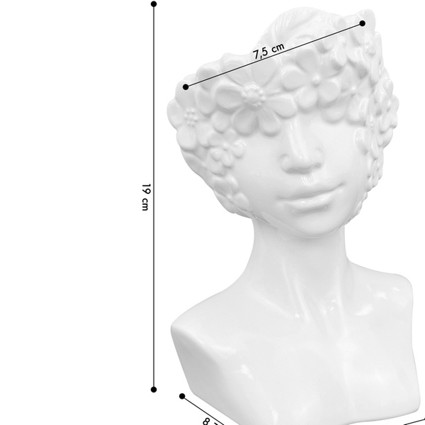 Realizzato in poliresina, questo vaso decorativo presenta un elegante mezzo busto femminile, perfetto per ogni ambiente moderno.