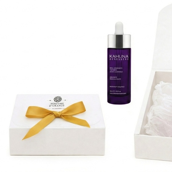 1 gift box profumeria in carta 16,5 x 16,5 x 5 cm con nastro e adesivo chiudipacco, colori e misure variabili in base alla disponibilità, sempre compatibili con il contenuto offerto.