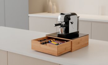 Cassetto portacapsule in bambù naturale, con ripiano in vetro