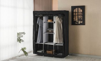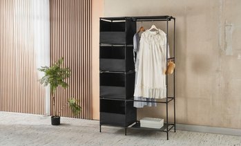 Armadio guardaroba in tessuto con ripiani e barra appendiabiti