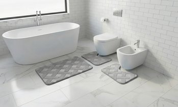 Set di 3 tappeti bagno memory antiscivolo, disponibili in vari colori
