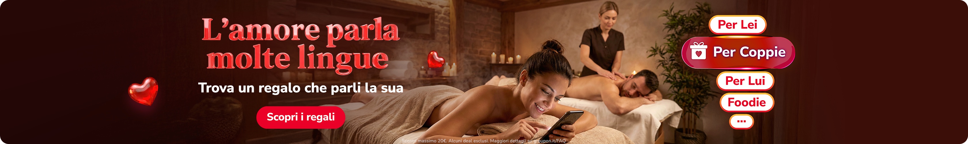 San Valentino è sinonimo di connessione, non di cliché. Che tu voglia regalare del tempo di qualità, un po' di coccole o una sorpresa premurosa, Groupon riunisce il meglio dei prodotti, dei dolcetti e dei regali che sono davvero personali. Scegli tra esperienze spa, prodotti di bellezza e molto altro, tutti pensati per creare momenti da condividere.