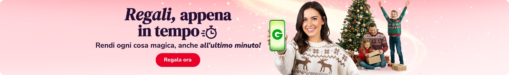 Hai dimenticato un regalo o hai poco tempo per organizzarti? Con Groupon puoi trovare in pochi secondi il regalo perfetto grazie a una selezione di prodotti e offerte viaggio con consegna o disponibilità immediata. Dalle idee tecnologiche ai prodotti per la casa, fino a valigie, accessori e pacchetti viaggio selezionati, hai tutto ciò che serve per stupire senza stress.